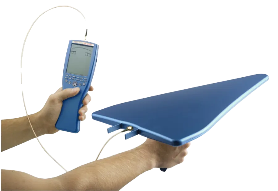 Антенна оснащена встроенным штативом высокого качества, которым так удобно пользоваться.. В комплектацию входят необходимые для подключения анализатора SMA-соединители. Антенна и дополнительное оборудование для нее поставляется в кейсе.