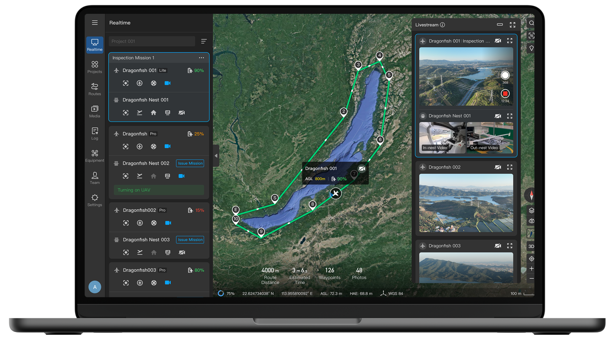 Программное обеспечение DJI FlightHub 2 использует систему облачных вычислений, что позволяет подключить множество управляющих устройств и своевременно синхронизировать информацию на всем оборудовании. Совместимо с автоматическими зарядными станциями, что обеспечивает непрерывную работу комплекса.