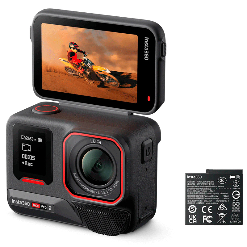 У Insta360 Ace Pro 2 прочный, водонепроницаемый корпус который выдерживает погружение до 12 метров без дополнительного бокса и оснащена удобным 2,5-дюймовым откидным сенсорным экраном для быстрого доступа к настройкам. Система стабилизации FlowState с 360° блокировкой горизонта гарантирует плавность и стабильность видео даже при динамичных движениях. Аккумулятор ёмкостью 1800 мАч обеспечивает до 3 часов записи подряд, а функция быстрой зарядки восстанавливает 80% заряда всего за 18 минут и полностью заряжает устройство менее чем за час.