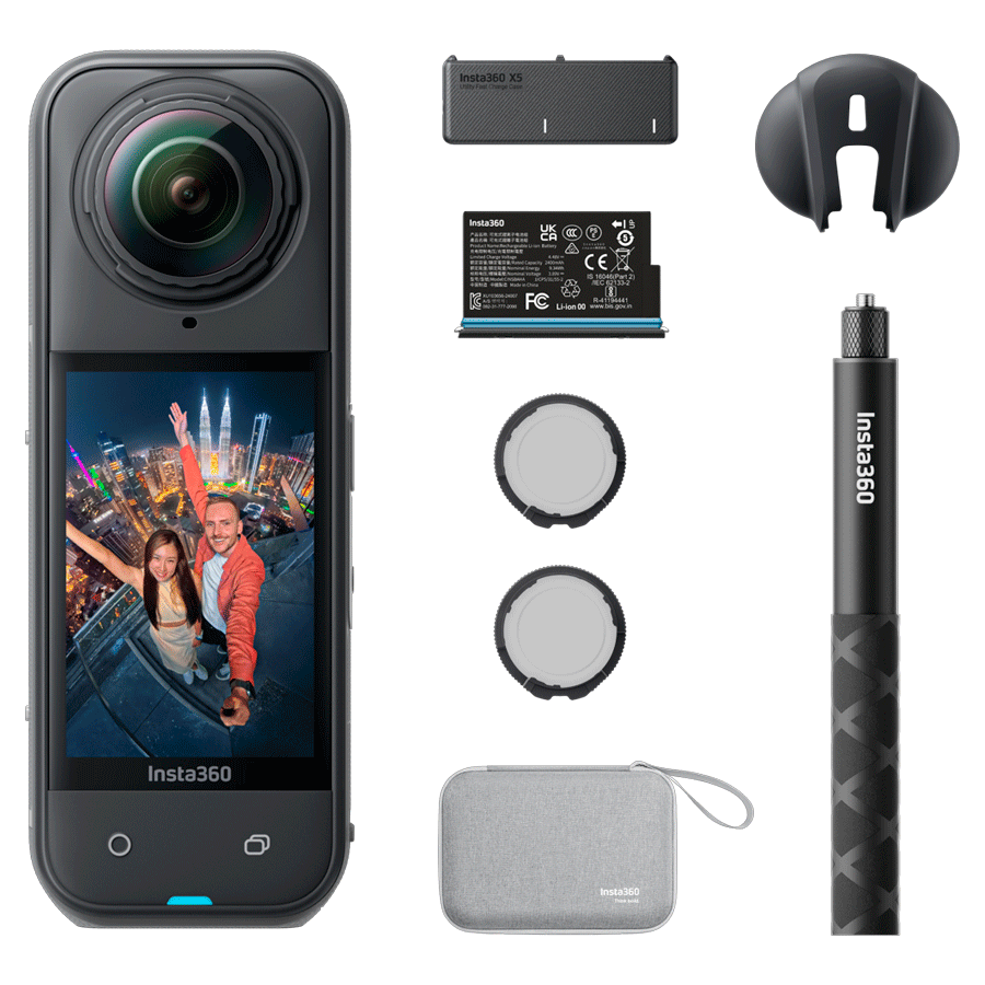 | Комплектация | Экшн-камера Insta360 X5 ×1 / Дополнительная аккумуляторная батарея ×1 / Чехол для быстрой зарядки ×1 / Невидимая селфи-палка 114 см ×1 / Стандартная защита объектива ×1 / Крышка объектива ×1 / Чехол для переноски ×1 |