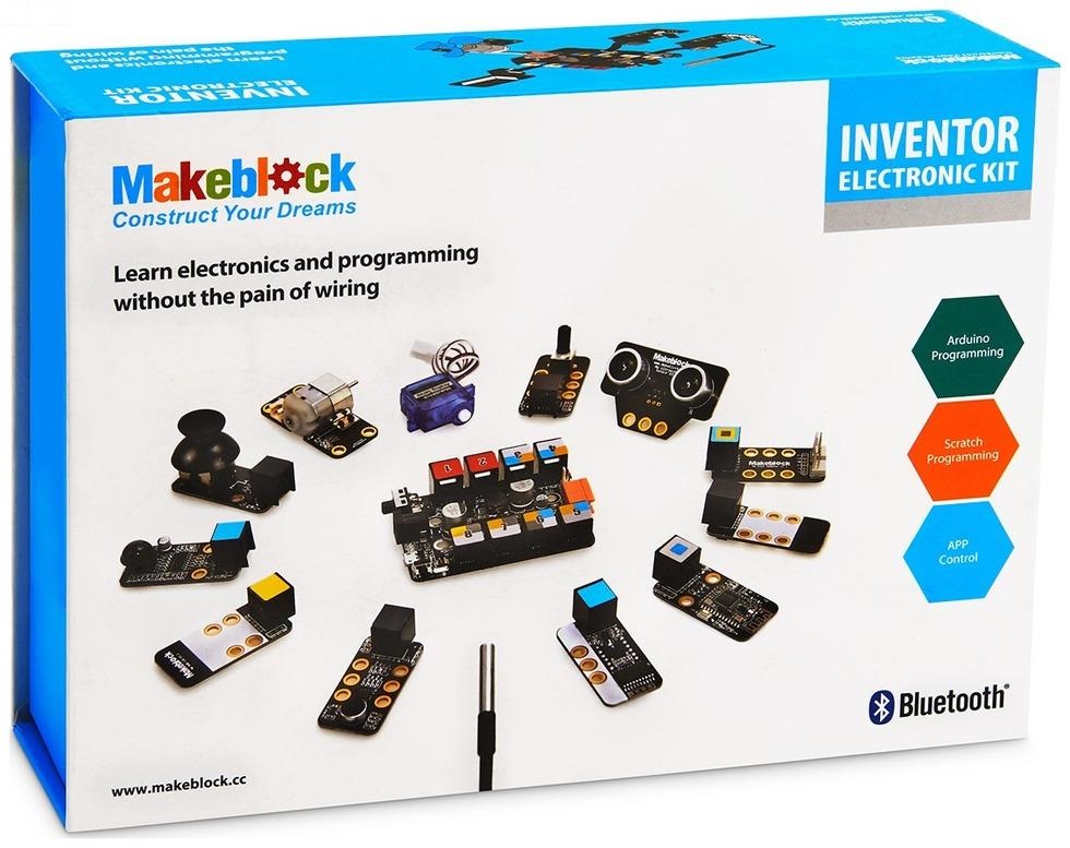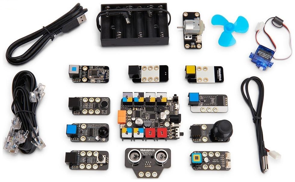Комплектация | Электронный набор изобретателя Makeblock / 1 × 9g микро сервопривод| 1 × 7-сегментный дисплей-красный| 1 × Контроллер Me Orion| 1 × джойстик| 1 × ультразвуковой датчик| 1 × потенциометр| 1 × датчик света и оттенков серого| 1 × RJ25 адаптер| 1 × PIR датчик движения| 4 × 6P6C RJ25 кабель-20см| 1 × звуковой датчик| 2 × 6P6C RJ25 кабель-35см| 1 × датчик температуры| 1 × 6P6C RJ25 кабель-50см| 1 × 130 двигатель постоянного тока| 1 × кабель USB 2.0 A-Male - Micro B-Male| 1 × Bluetooth-модуль (двойной режим)| 1 × батарейный отсек для (6) AA| 1 × RGB светодиод| |