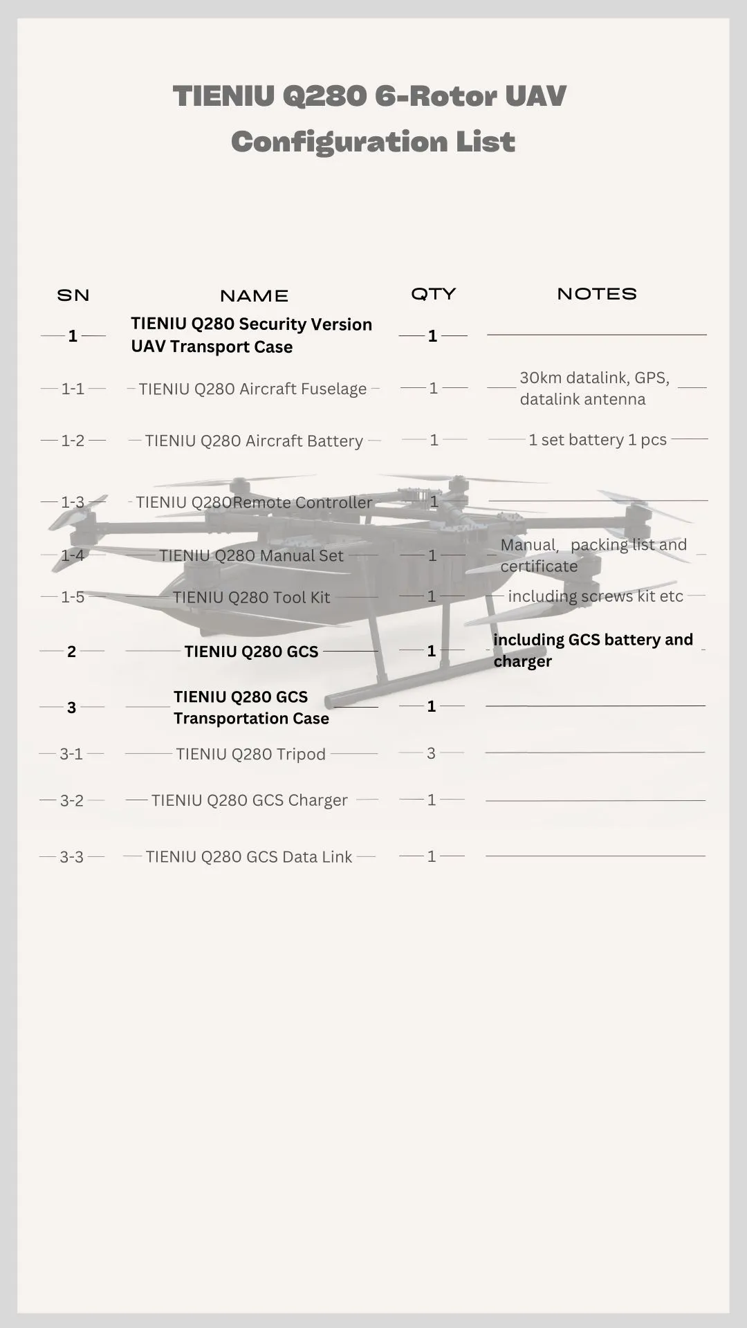 Комплектация | Гексакоптер SMD TIENIU Q280 / Документация |