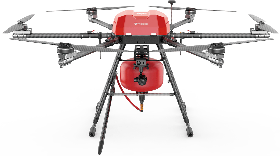 Гексакоптер Walkera WK-1800 Spray dry powder используется при ликвидации огня с воздуха. Модель отличается повышенной грузоподъемностью (до 20 кг полезного веса) и прочностью. Пожарный квадрокоптер за несколько секунд разгоняется до 54 км/ч, активно противостоит сильному ветру и безупречно функционирует даже в сложных погодных условиях. Антикоррозийное покрытие промышленного стандарта обеспечивает защиту от пыли и влаги, а высокопрочные карбоновые лучи гарантируют жесткость конструкции.