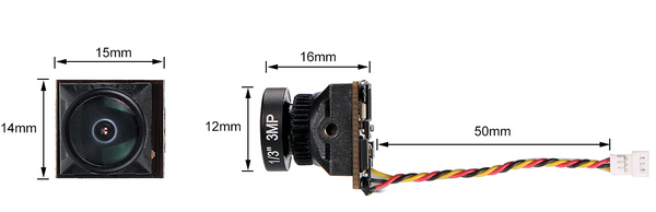 Вес устройства составляет всего 3,5 грамм. Размер камеры – 14х14х16 мм. Дополнительно к камере можно приобрести защитный купол из литого цельного пластика, который надежно защищает устройство от повреждений при падении дрона.