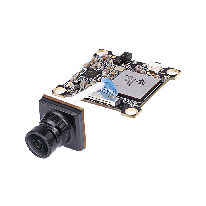 Сенсор камеры с CMOS-датчиком на 1/2.7 дюймов, объектив в 1,8 мм имеет оптимальный показатель задержки. В комплектацию к камере входит также защитный купол из цельного литого пластика, надежно защищающий хрупкий элемент от повреждений при внешнем воздействии или падении. Камера легко подключается к дрону и устанавливается вместе с видеопередатчиком. Крепления и винты для установки камеры входят в комплект поставки.