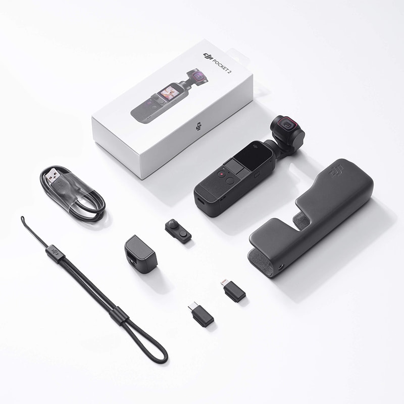 | Комплектация | Камера DJI Pocket 2 / Мини-джойстик управления / Чехол для защиты / Крепление штатива (1/4″) / Ремешок на запястье / Адаптер для смартфона (Lightning) / Адаптер для смартфона (USB-C) / Кабель питания |
