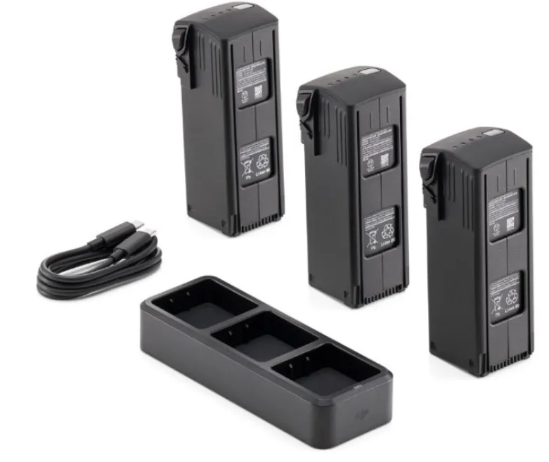 Комплектация | Интеллектуальная летная батарея DJI Mavic 3 - 3 шт. / Концентратор зарядки аккумулятора DJI Mavic 3 (100 Вт) - 1 шт. / Документация |