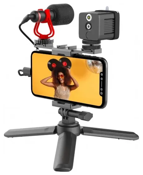 Комплект для мобильной съемки Gudsen MOZA Vlogging Kit включает в себя несколько устройств для проведения видеосъемки с вашего смартфона. В комплекте есть небольшой штатив, дополнительное светодиодное освещение, телескопическая сэлфи-палка и микрофон. Все оборудование компактно размещается рядом со смартфоном и позволяет создавать видео более высокого качества. Снимайте для своего блога в любимой социальной сети дома, на свежем воздухе, в путешествиях и на работе.