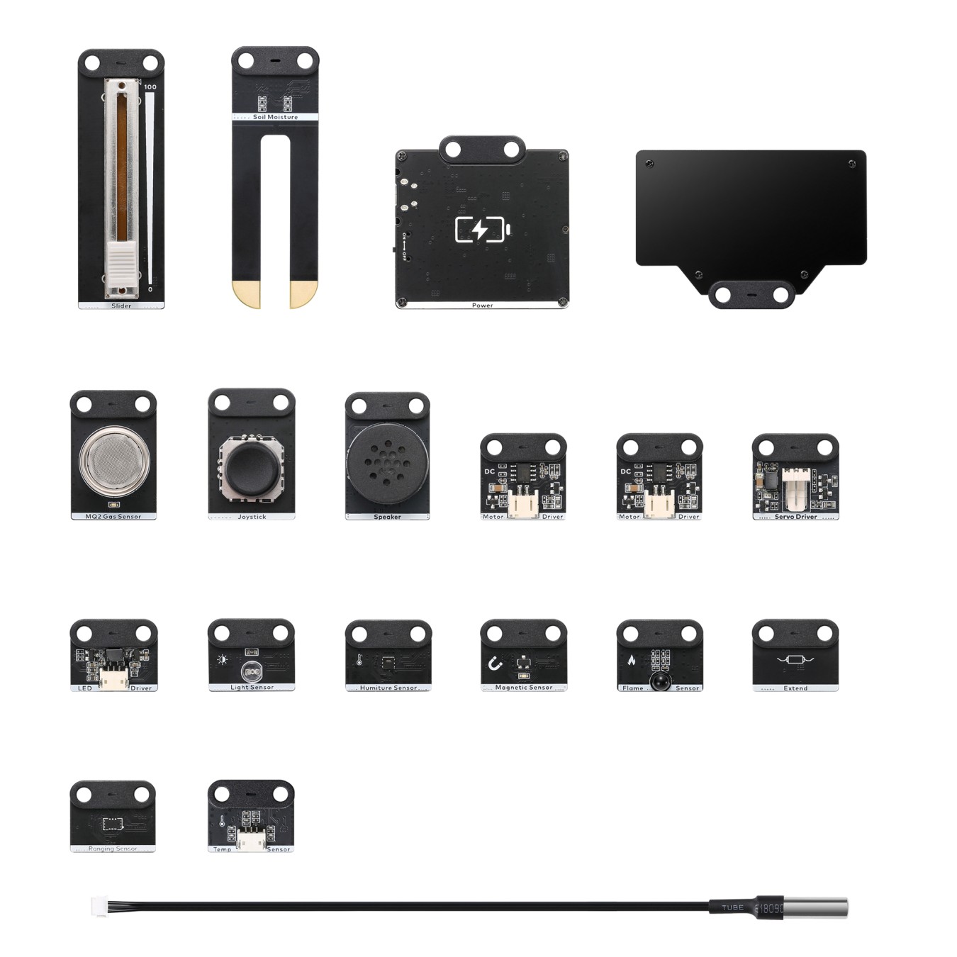Комплект не включает в себя контроллер. Используя модули, можно изучать ИИ, пробовать внедрять современные технологии в обычной жизни, создавать невероятных роботов с разными возможностями и функциями, реализовывать идеи визуального программирования. Модули подходят для программирования на языке кодирования Python. Их можно внедрить для использования в классах информатики, кружках дополнительного образования, соревнованиях по робототехнике и других областях.