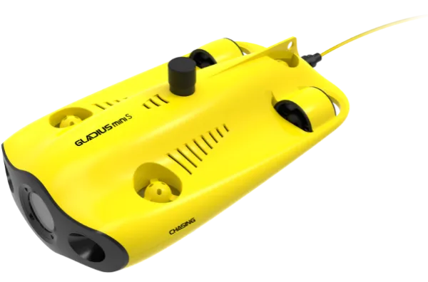 Дрон Gladius Mini S может использоваться даже в сложных условиях с плохой видимостью и непредсказуемым рельефом. Управление устройством призводится с помощью пульта, входящего в комплект. Соединение дрона и пульта производится по сети Wi-Fi, а также с помощью кабеля. Это делает взаимодействие дрона и управляющего им элемента надежным и исключает вероятность потери устройства. Дрон работает от встроенных аккумуляторов емкостью в 4800 мАч. Заряда одного аккумулятора хватает на работу в течение 4 часов. Максимальная глубина погружения достигает 100 метров.