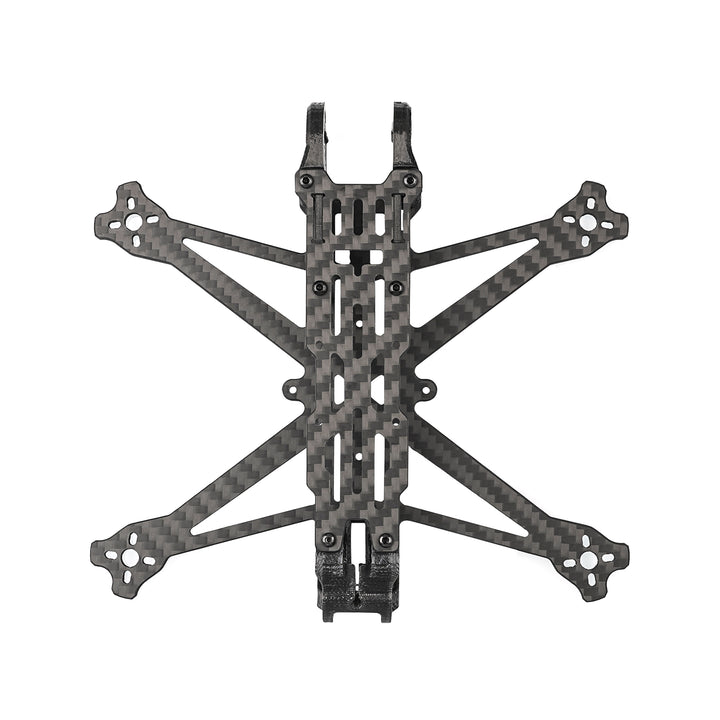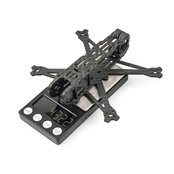 Рамки из комплекта произведены из прочного и легкого материала – углеродного волокна Т700, который максимально стабилизирует устройство, делает его более устойчивым к внешним воздействиям, ударам и падениям. За счет малого веса дрон с рамкой из углеродного волокна можно использовать для выполнения трюков фристайла.