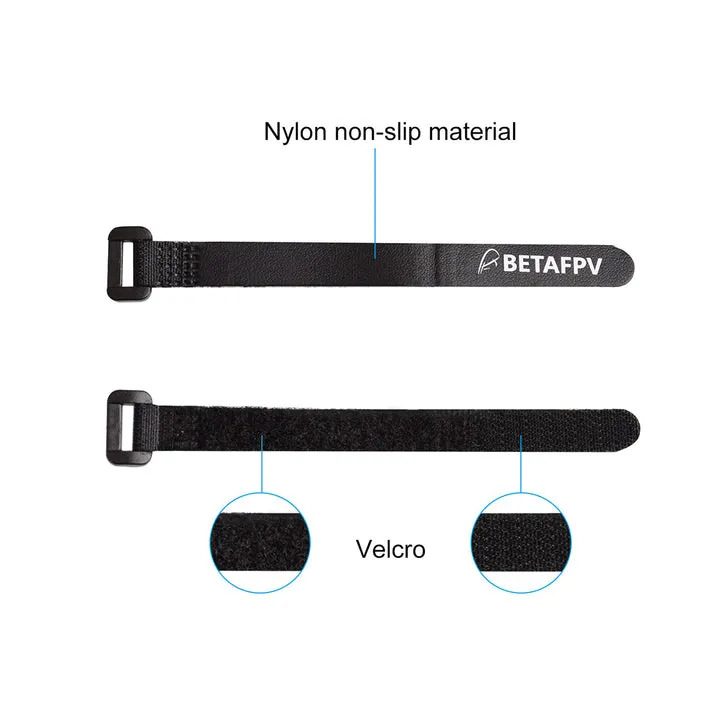 Комплект ремешков для батареи BetaFPV Lipo разработан для прочной фиксации аккумуляторов на раме дрона. В комплекте 6 ремешков двух видов: 3 ремешка для аккумуляторов 2-3S и 3 ремешка для аккумуляторов 3-4S. Ремешки отличаются между собой размерами. Каждый из элементов комплект качественно выполнен, имеет легкий вес и произведен из прочного и износоустойчивого материала. Ремешки дополнены нейлоновой подложкой для батареи. Простая установка батареи на ваш дрон с помощью таких ремешков гарантирована.