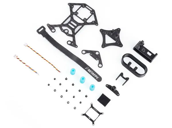 Элементы комплекта произведены в основном из прочного и легкого материала – углеродного волокна, поэтому при кажущейся на первый взгляд хрупкости элементы достаточно прочны и отлично приспособлены для установки камеры и крепления на раму квадрокоптера. Элементы комплекта устанавливаются таким образом, чтобы центр тяжести был сконцентрирован в одном месте. Это достигается за счет установки камеры и аккумулятора в верхней части платформы. Они и создают тот необходимый центр тяжести, играющий решающую роль в маневренности. В результате дрон летит более плавно, а видео получаются более стабилизированными и четкими. Используя комплект Beta85X V2, вы сможете самостоятельно модернизировать свой дрон и расширить его функциональное применение.