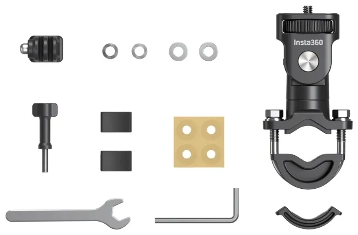 Крепление для мотоцикла Insta360 Motorcycle U-Bolt Mount - разработано для создания стабильных видеозаписей с мотоцикла, обеспечивая профессиональное качество съемки даже в движении. Запатентованная конструкция с карданным подвесом гарантирует надежную фиксацию камеры и минимизацию вибраций во время езды. Система совместима с большинством популярных моделей мотоциклов благодаря регулируемому U-образному болту и двум проставкам разного размера.