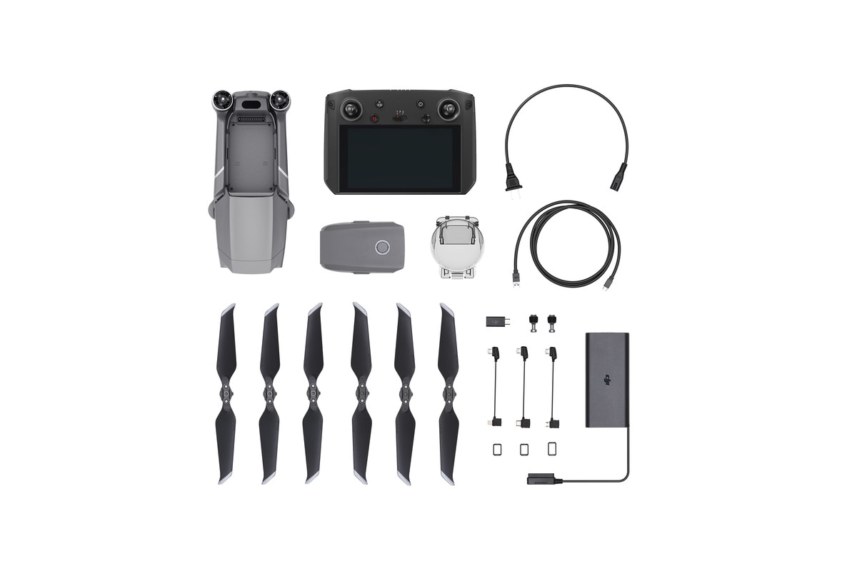 Комплектация | Дрон DJI Mavic 2 Pro / Пульт дистанционного управления Smart Controller / Аккумулятор / Зарядное устройство / Кабель питания / Винты (3 пары) / Коммутационный кабель USB 3.0 Type-C / Запасные ручки управления для пульта — 2 шт / Адаптер USB / Документация |