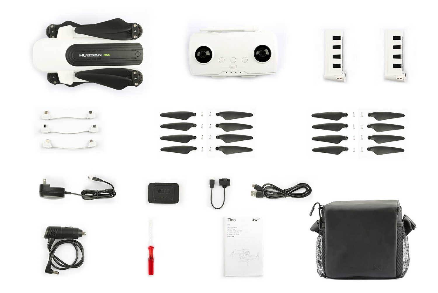 Комплектация | Квадрокоптер Hubsan ZINO Portable / Пульт дистанционного управления / Аккумулятор, 2 шт. / Пара пропеллеров, 4 шт. / Зарядное устройство / Блок питания к зарядному устройству / Переходник к зарядному устройству / Кабель для сопряжения смартфона с пультом, 3 шт. / USB-кабель для сопряжения дрона с ПК / Транспортировочная сумка / Отвертка / Руководство пользователя |