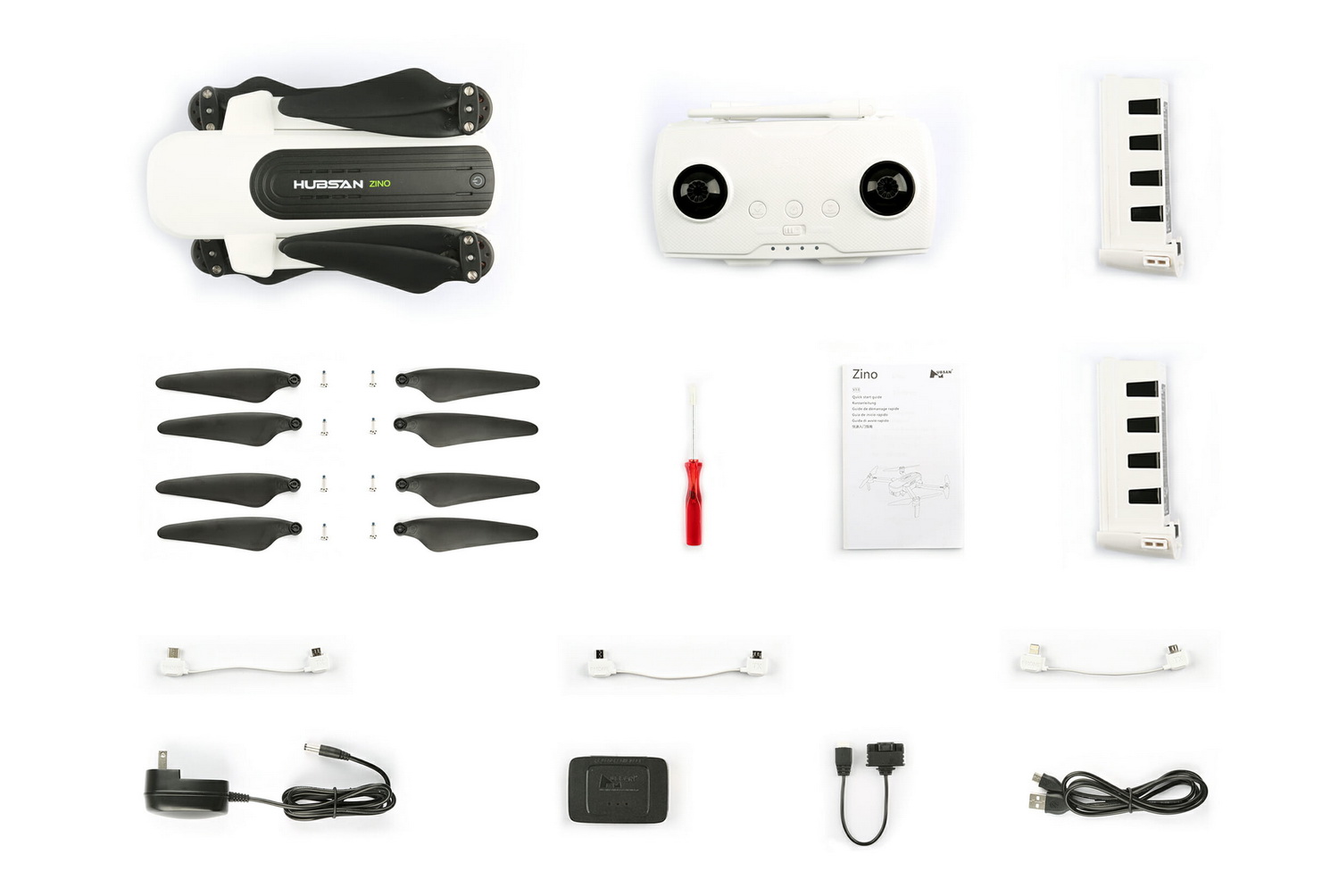 Комплектация | Квадрокоптер Hubsan ZINO с запасной батареей / Пульт дистанционного управления / Аккумулятор, 2 шт. / Пара пропеллеров, 2 шт. / Зарядное устройство / Блок питания к зарядному устройству / Переходник к зарядному устройству / Кабель для сопряжения смартфона с пультом, 3 шт. / USB-кабель для сопряжения дрона с ПК / Отвертка / Руководство пользователя |