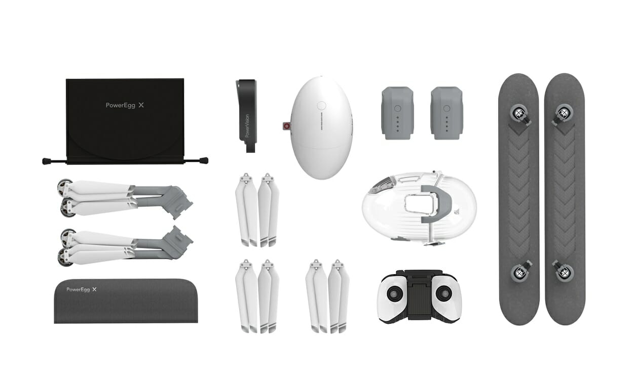 | Комплектация | Дрон PowerVision PowerEgg X Wizard / 2x АКБ / 1x пульт дистанционного управления / 1x прозрачный водонепроницаемый чехол / 2x насадки для взлета и посадки на воду / 6x пропеллеров / 2x держателя двигателей / 1x сумка для двигателей / 1x сумка для хранения / 1x ремешок |