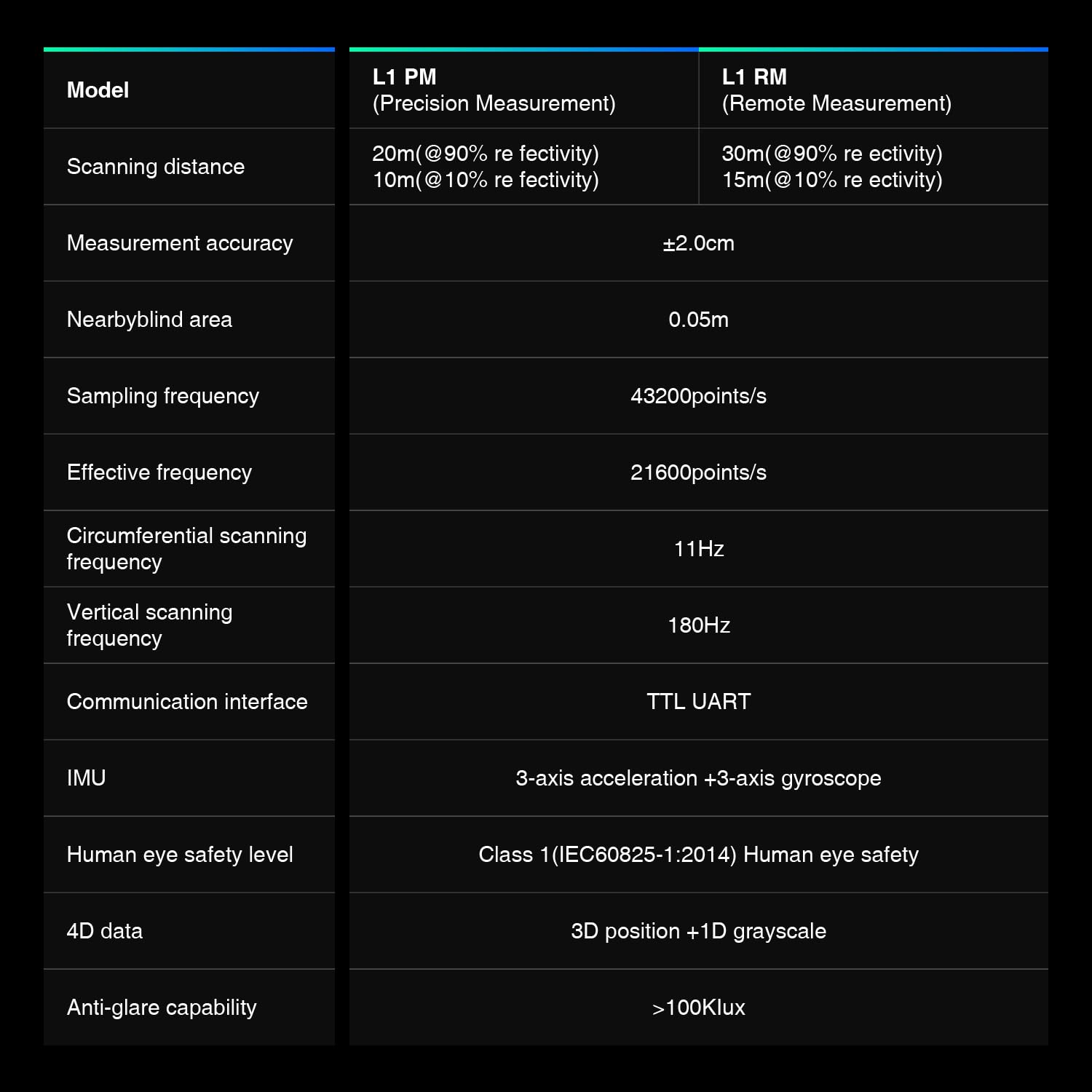 | Артикул | 4D LiDAR L1 PM (Precision Measurement) |