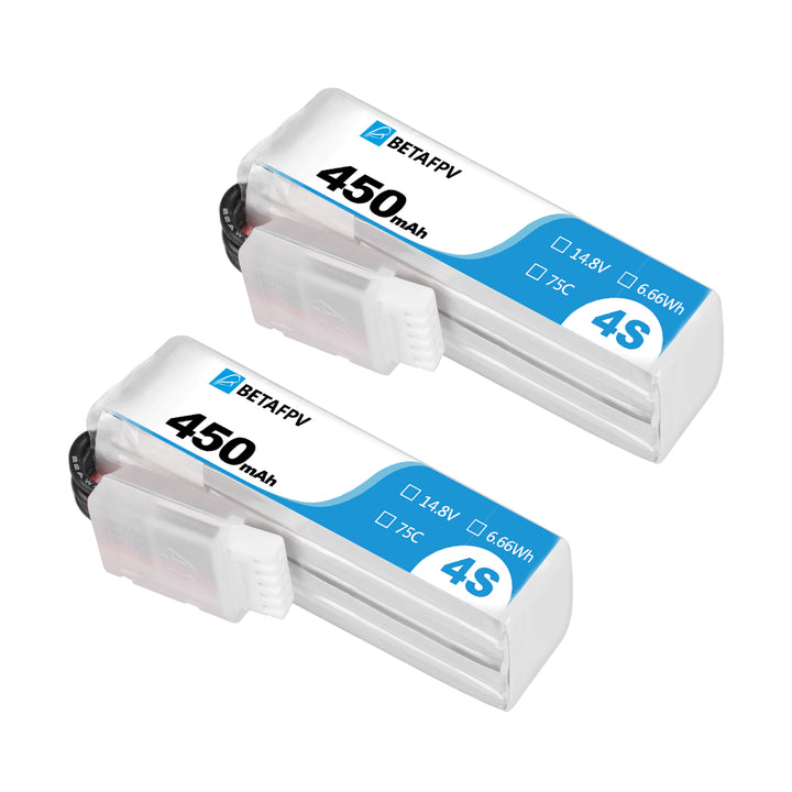 LiPo-аккумулятор BetaFPV 450mAh 4S разработан для установки на маленькие и сверхлегкие летательные беспилотные аппараты. Устройство с небольшим весом и малым размером идеально подходит для моделей серии Beta85X и Beta95X, а также совместимо с другими версиями дронов с рамой из углеродного волокна.