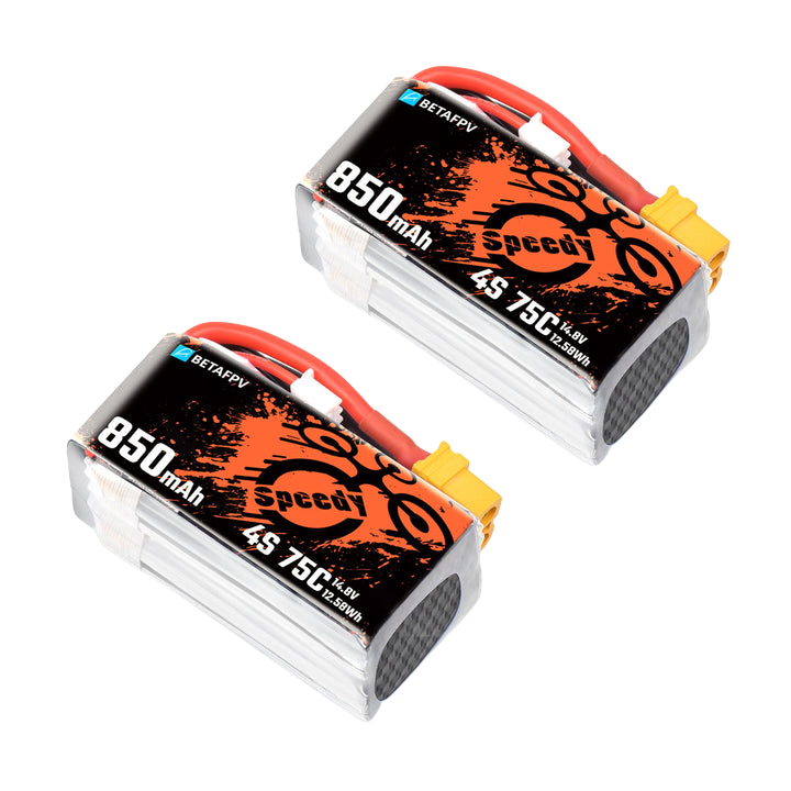 LiPo-аккумулятор BetaFPV 850mAh 4S 75C разработан для обеспечения электроэнергией маленьких и легких беспилотных летательных аппаратов. Устройство с повышенной емкостью в 850 мАч и высоким уровнем напряжения в 4S, соответствующим 14,8 V, дает более продолжительное время полета. Модель отличается высокими показателями разряда, поэтому дрон может летать на полной скорости и за время полета выполнять больше различных действий: трюков фристайла, съемки с воздуха и т.д. Липо-аккумулятор идеально подходит для установки на 3,5-дюймовые дроны Quad. Например, аккумулятор совместим с 4-х дюймовыми моделями TWIG Mutant, TWIG Mutant, X-Knight и другими.