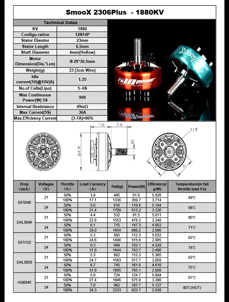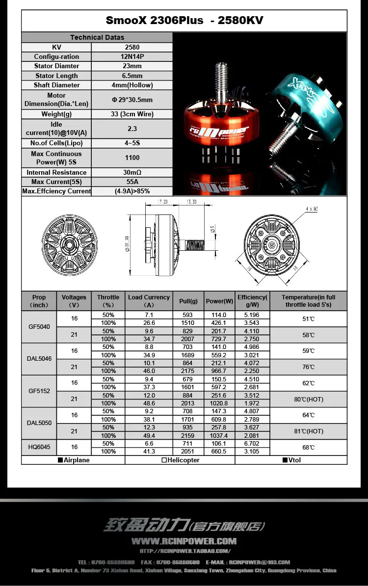 | Комплектация | Мотор RCINPower SmooX GTS V2 2306 Plus / Руководство |