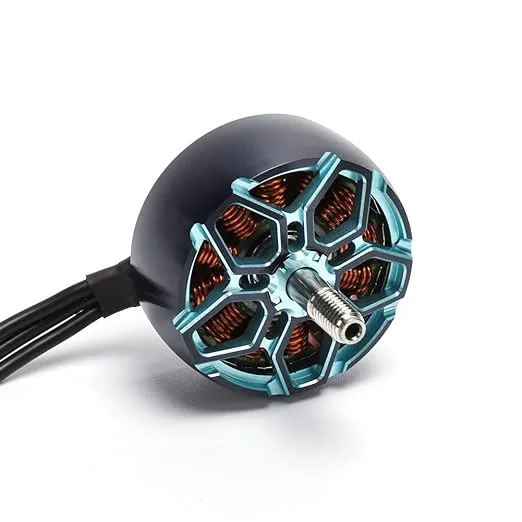 Титановый сплавной вал диаметром 5 мм обеспечивает исключительную прочность и устойчивость к деформации даже при экстремальных нагрузках, а корпус из ударопрочного алюминия 7075 гарантирует защиту внутренних компонентов при жестких посадках. Особого внимания заслуживают высококачественные подшипники NSK известные своей плавностью хода и долговечностью, а также инновационные выгнутые дуговые магниты N52H с центральной щелью, обеспечивающие мощный крутящий момент при 900KV и стабильную работу на высоком напряжении до 33,6 В (8S).