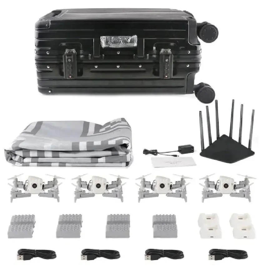 | Комплектация | Набор дронов Litebee Wing FM-4 STEM Programmable Drone Formation / Руководство / Зарядное устройство для литиевых батарей х 4 / Коврик с QR-кодами х 1 / Маршрутизатор х 1 / Литиевая батарея х 8 / Модуль позиционирования х 4 / Фонари х 4 / Соединительный кабель х 4 / Зарядная база х 4 / Кабель микро-USB х 4 / Ключ для пропеллеров х 1 / Инструкция х 1 / Кейс транспортировочный х 1 / Запасные винты (по часовой стрелке / против часовой стрелки по 2 шт.) х 4 / Запасные моторы (по часовой стрелке / против часовой стрелки по 2 штуки) х 4 / Запасные штифты (стандарт: 10 | половина: 4) х 4 |