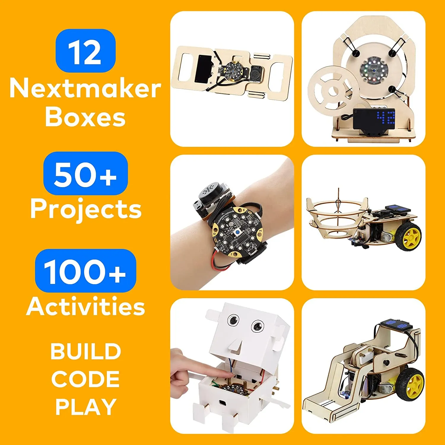 | Дополнительные возможности | Nextmaker Box поставляется с многочисленными онлайн-мероприятиями, учебными материалами с увлекательной анимацией и пошаговыми инструкциями. Дети смогут легко начать и добиться отличных результатов. / Комплект NextMaker Box - это идеальный учебный инструмент для домашнего обучения и занятий в школе. Рекомендуется для детей от 6 до 12 лет. / Все коробки NextMaker Box можно объединить, чтобы создать практически все, что только можно вообразить. / Это идеальный подарок для ребенка на день рождения, который наверняка его заинтересует, а потом захватит своими фантастическими возможностями. Каждая новая коробка будет сюрпризом и не даст ему скучать! |