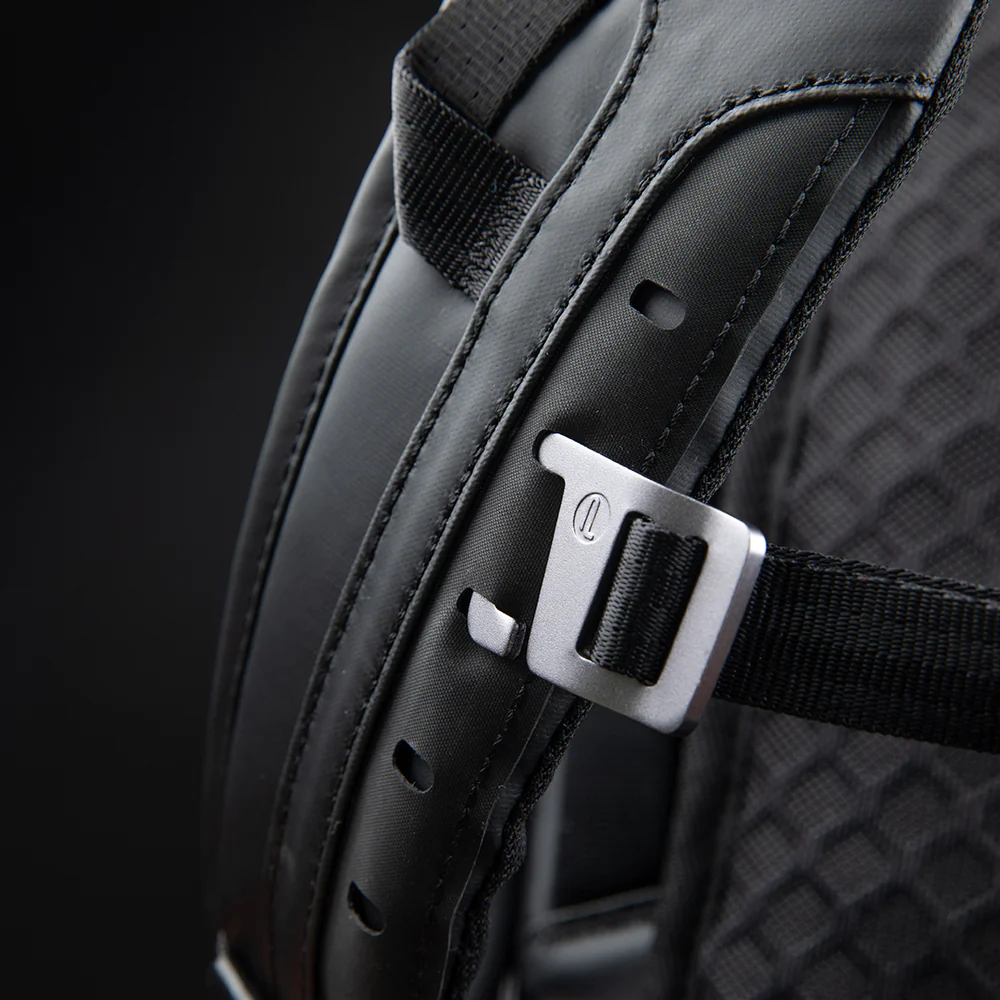 Рюкзак PGYTECH OneGo (чёрный обсидиан) оснащён плечевыми ремнями, усиленными специальной прокладкой с сотовой структурой для большего рассеяния давления от общего веса. Задняя панель изготовлена по технологии AirFiber для обеспечения вентиляции, не допуская запотевания при носке. В батарейном кармане имеется многофункциональный магнит.