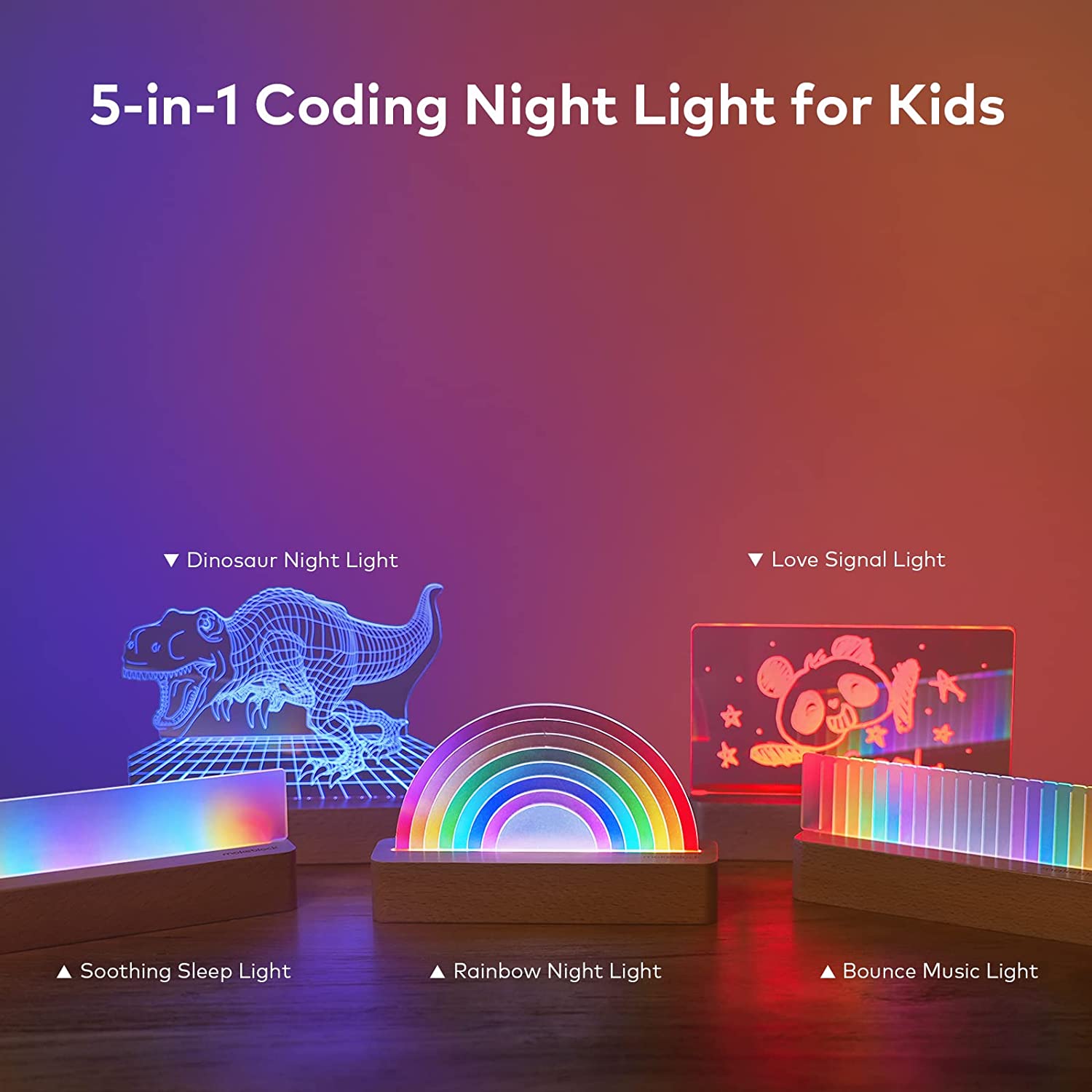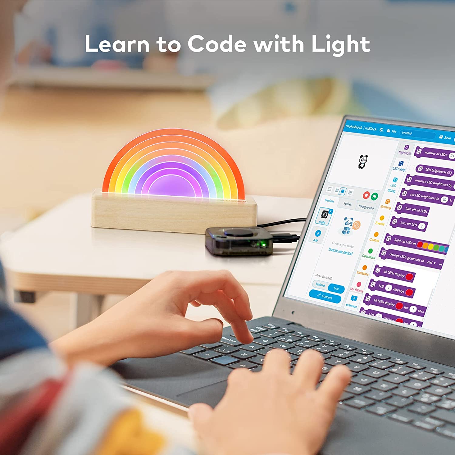 | Дополнительные возможности | Каждый светодиод имеет крошечный микроконтроллер и может быть запрограммирован — светиться уникальным цветом и яркостью / В сочетании с мощным блоком управления xLight вы можете управлять светом несколькими способами, включая управление жестами, управление приложениями, дистанционное управление, а свет также может синхронизироваться с музыкой / Блок управления xLight представляет собой одноплатный компьютер, оснащенный передовой электроникой, что делает его мощным для управления и создания любых световых эффектов. В сочетании с mBlock (приложение/ПК) это помогает развивать навыки кодирования от блочного программирования до Python / xLight N1 предлагает 5 акриловых световых панелей уникального дизайна, включая радужный свет, трехмерный свет динозавра, мягкий свет, спектральный свет и доску для заметок. Дети могут дать волю своему воображению с помощью огней и получить удовольствие от программирования. |