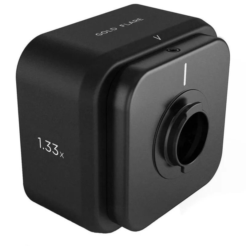 Объектив | Коэффициент увеличения : 1,33-кратное горизонтальное сжатие / Соотношение сторон (видео) : синемаскоп 2,40:1 (после сжатия) / Искажение : винтажное анаморфотное бочкообразное искажение / Оптика: 2 цилиндрических элемента / Покрытие линз : винтажные горизонтальные синие/золотые блики |