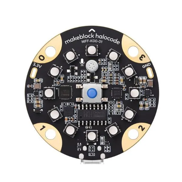 Одноплатный компьютер HaloCode_EN V2 разработан для обучения программированию на основе устройств Makeblock. Это компактный компьютер с поддержкой соединения Wi-Fi. Устройство оснащено комплектом разных датчиков, включая 12 цветных светодиодов которые можно запрограммировать и встроенный микрофон.