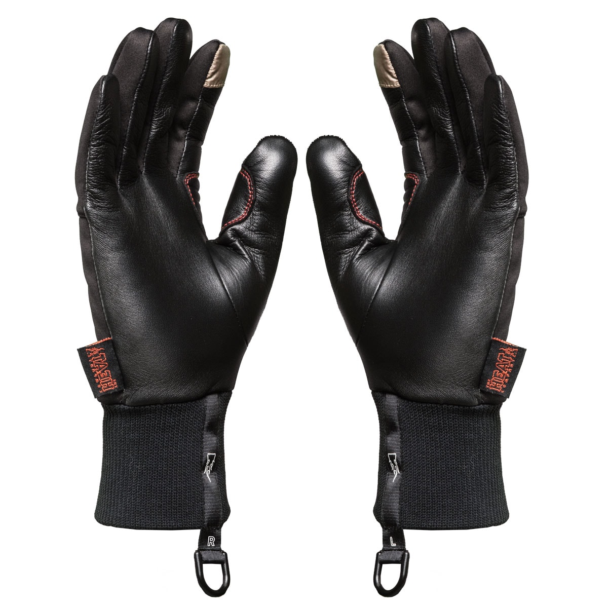 Модель сшита из приятной и мягкой на ощупь кожи, дополнена вставками из эластичной ткани и удлиненными вязаными манжетами. Эта модель подходит для управления сенсорными экранами: не нужно находясь на холоде снимать перчатки, чтобы управлять фотоаппаратом или ответить на звонок. Манжеты дополнены креплением для карабина, чтобы вы могли их повесить и не потерять.