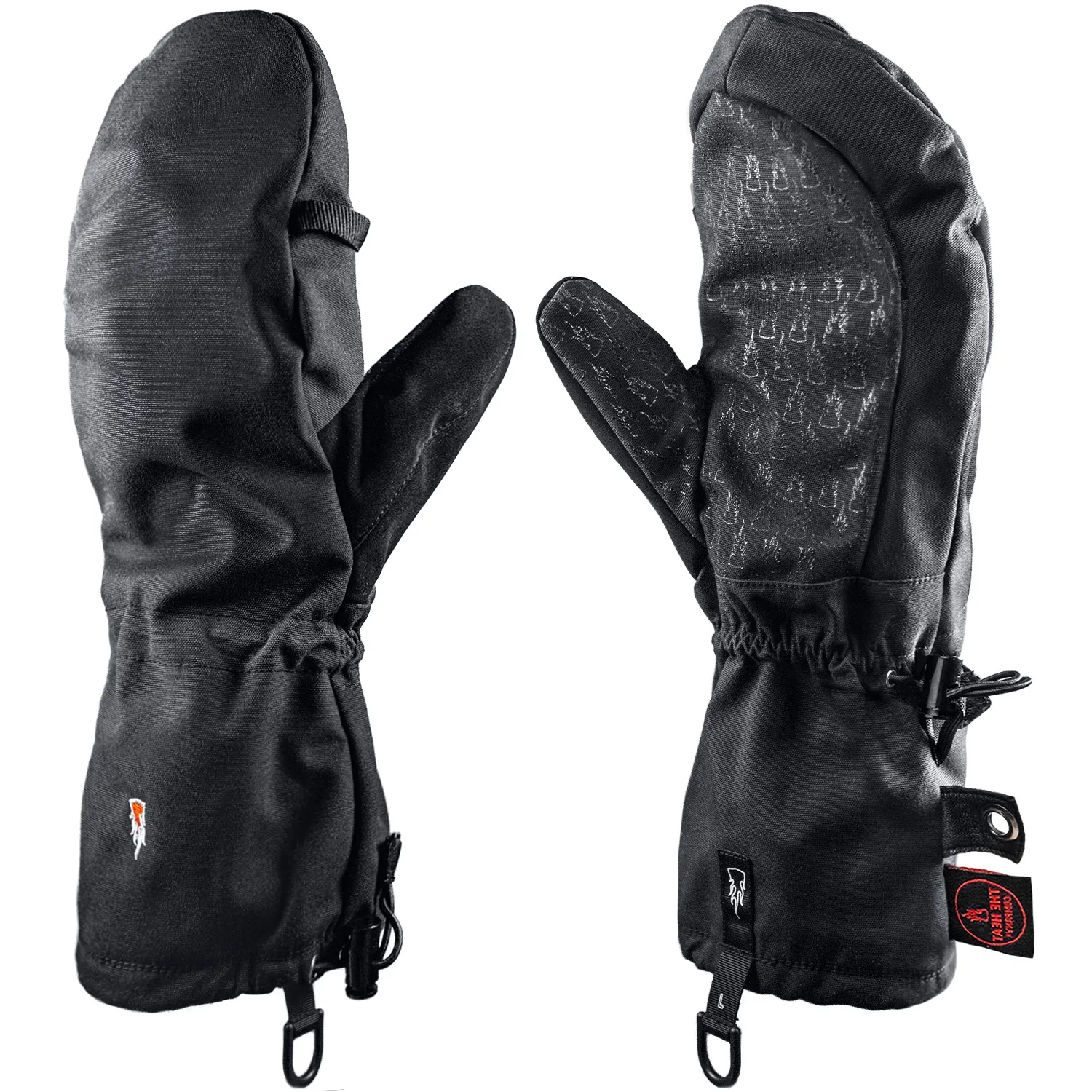 Рукавицы имеют особый откидной верх, частично открывающий пальцы в перчатках. Открыв рукавицу и большой палец, вы сможете производить манипуляции, требующие точных движений. Перчатки совместимы с сенсорным экраном, поэтому вы сможете практически все время не снимать их, даже если требуется ответить на телефонный звонок, просмотреть сообщение или настроить фотокамеру. На ладонях рукавицы прошиты натуральной кожей – мягким, но прочным материалом с отличными эксплуатационными характеристиками. В рукавицах предусмотрен небольшой карман для нагревателя рук. Два ремешка с утяжкой обеспечивают более комфортную посадку и защищают от ветра и осадков.