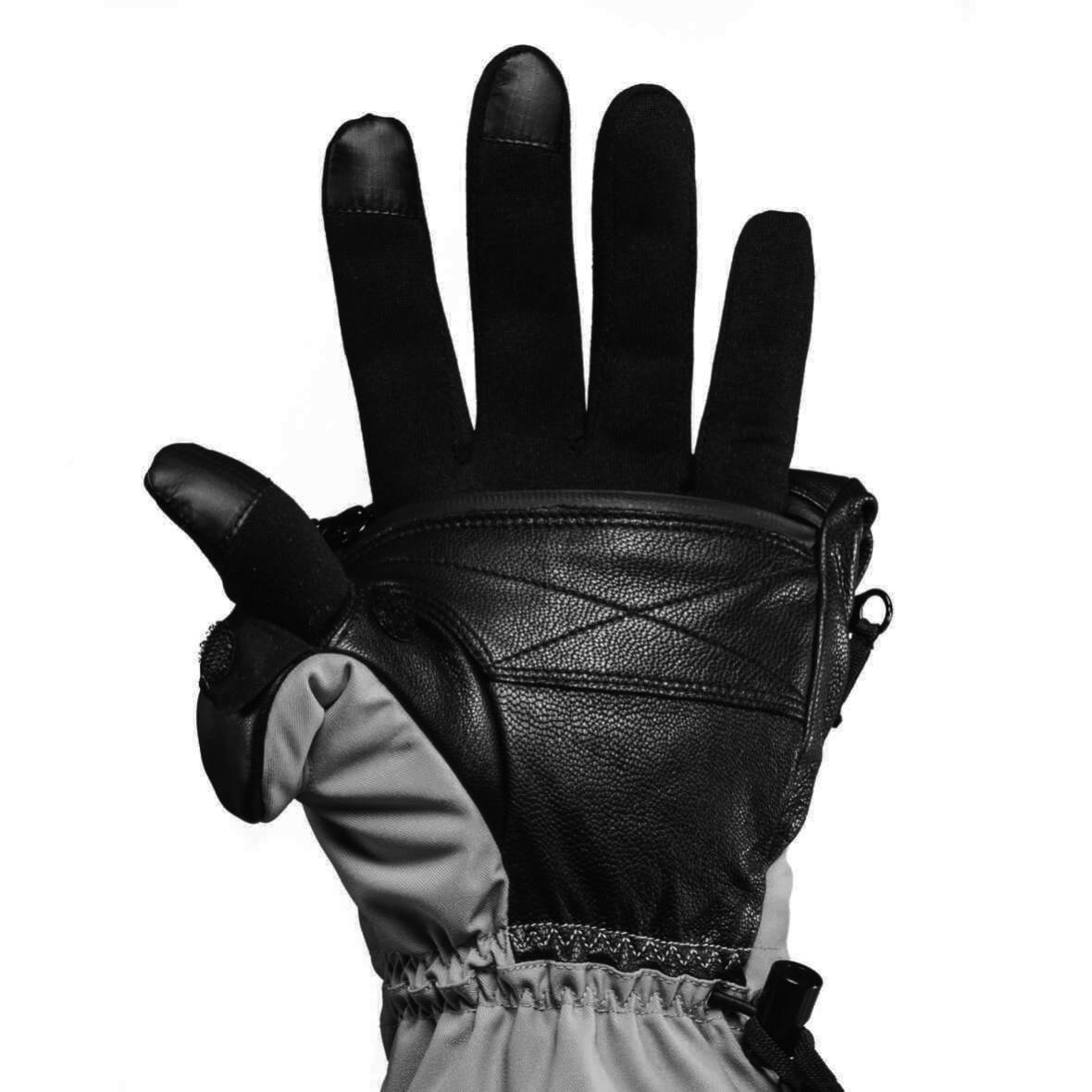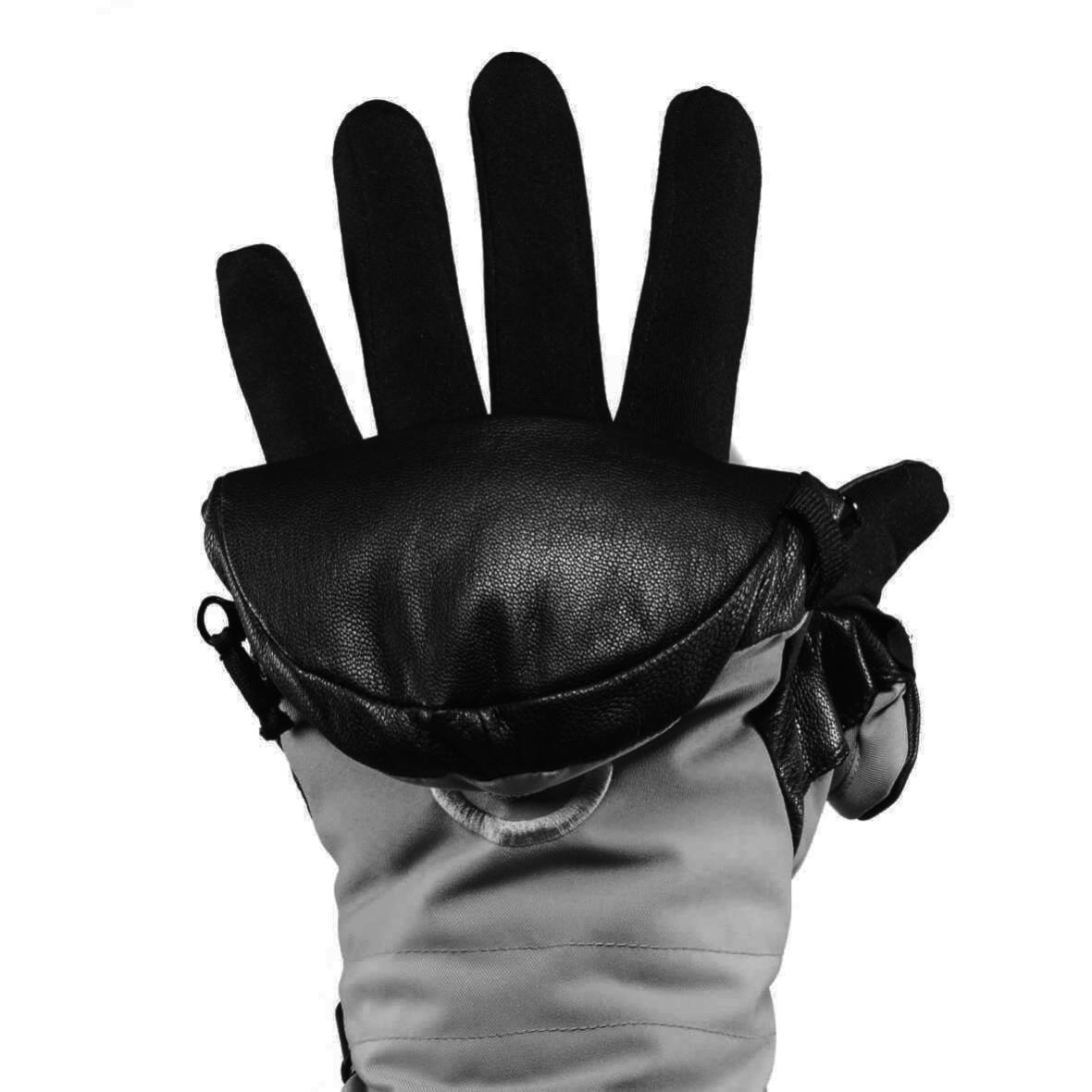 Рукавицы не только помогают сохранить тепло. В них удобно работать за счет откидывающегося верха и большого пальца. Частично открывая пальцы, вы сможете, не снимая внутренние перчатки произвести нужные вам манипуляции и быстро закрыть варежки обратно. Откидные элементы оснащены магнитными фиксаторами, чтобы вам было удобнее работать.
