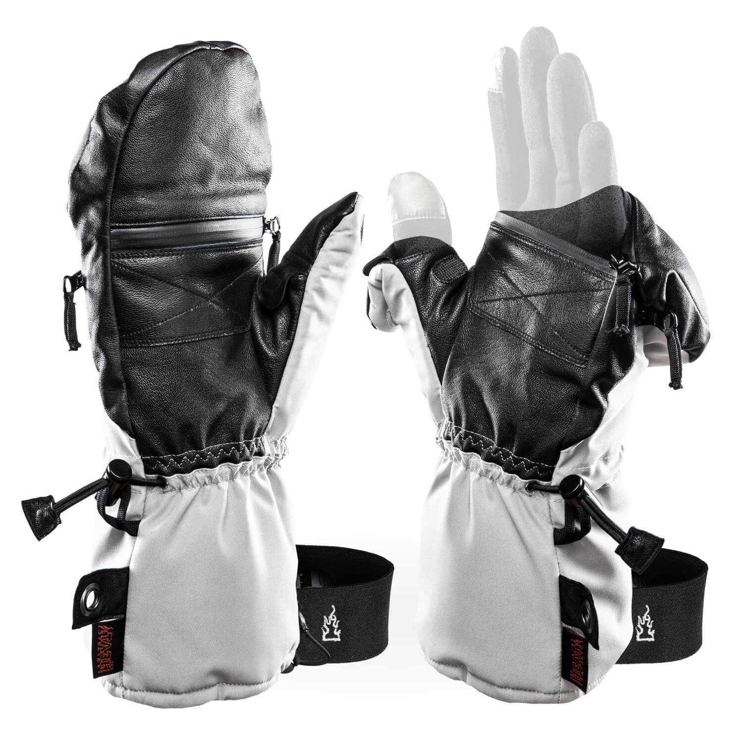 Рукавицы The Heat Company Shell white помогут вам с максимальным комфортом работать на свежем воздухе в морозную зимнюю погоду. Рукавицы рекомендуется носить с теплыми перчатками, так как при создании нескольких слоев вам будет теплее и комфортнее. Рукавицы имеют особенный крой – откидной верх и откидной большой палец. Вы сможете частично открыть пальцы, оставляя остальную часть кисти в тепле. Воспользуйтесь откидным верхом варежек для того чтобы ответить на телефонный звонок, настроить аппаратуру, провести съемку или выполнить другие манипуляции, требующие точных движений. У рукавиц есть магнитный фиксатор для откидной части, чтобы не мешать вам работать.
