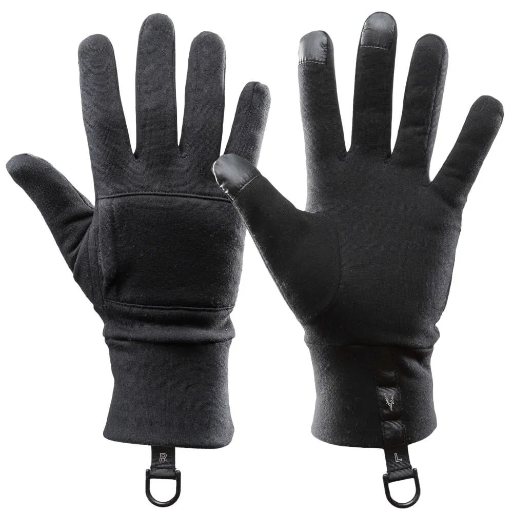 Перчатки для фотосъемки Vallerret Milford L– двойные перчатки, которыми вы сможете пользоваться в разную погоду: холодную, морозную и дождливую. Каждая из перчаток состоит из двух независимых частей: плотно облегающие флисовые перчатки и более свободный верхний слой перчаток из водонепроницаемой ткани, которые надеваются сверху. На флисовом слое есть съемные элементы на большом и указательном пальцах. Открыв их, вы сможете управлять аппаратурой, настраивать технику и снимать, продлевая время съемки и сохраняя тепло рук. Если наступает непогода, вы сможете надеть на флисовые перчатки дополнительные водозащитные.
