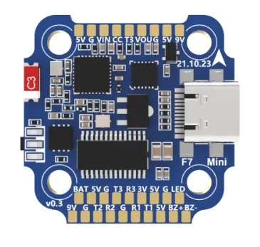 | Комплектация | Плата SpeedyBee F7 Mini 35A 3-6S 8-bit Flight Controller Stack / SpeedyBee 35A BLHeli_S Mini 4-in-1 ESC- 1 шт. / XT30 Power Cable(Length: 7cm) - 1 шт. / 8pin JST cable(For FC & ESC Connection)- 1 шт. / 35V 470uF Capacitor - 1 шт. / M2(Diameter) * 20mm(Length) Screw - 4 шт. / M2(Diameter) * 25mm(Length) Screw - 4 шт. / M2(Hole Diameter) * 6.6mm(Height) Anti-vibration Silicone Grommets - 9 шт. / M2 Silicone O-Ring - 5 шт. / M2 Nylon Hex Nut - 5 шт. / M3(Diameter) * 20mm(Length) Screw - 4 шт. / M3(Diameter) * 25mm(Length) Screw - 4 шт. / M3(Hole Diameter) * 6.6mm(Height) Anti-vibration Silicone Grommets - 9 шт. / M3 Silicone O-Ring - 5 шт. / M3 Nylon Hex Nut - 5 шт. / Документация |