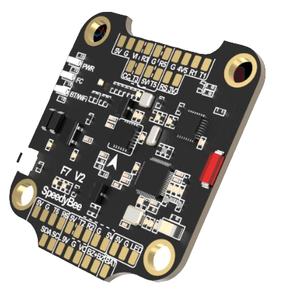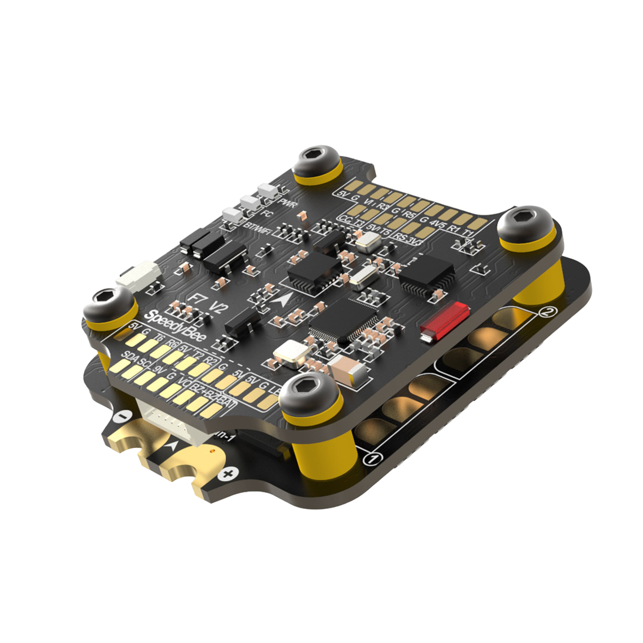 Плата SpeedyBee F7 V2 BL32 45A Stack(with V22 ESC) – один из главных компонентов в квадрокоптере, от которого зависит точность полета, его маневренность, мощность и возможность подключения дополнительных устройств. Контроллер полета оснащен чипом беспроводной связи, совмещает в себе два типа беспроводного подключения Wi-Fi и Bluetooth. Используя их, вы сможете без проводного подключения к ноутбуку изменить прошивку платы, проанализировать данные с черного ящика и настроить параметры работы двигателей. Обмен данными происходит между контроллером и смартфоном с установленным на нем приложением. Скачивайте в приложении новую прошивку и передавайте ее контроллеру по беспроводному соединению за 90 секунд.