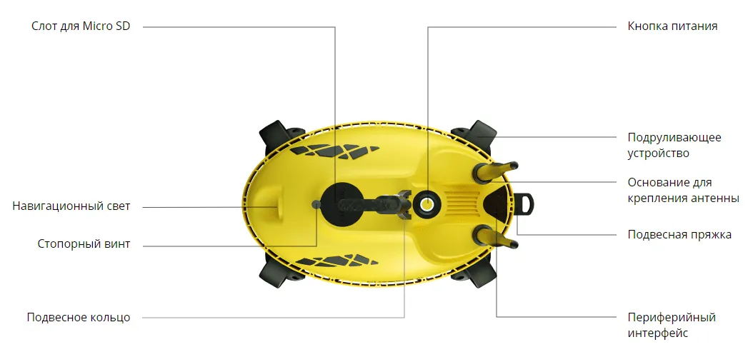 Комплектация | Подводный дрон Chasing F1 Fish Finder / Антенны x 2 / Адаптер питания / Штифт быстрого выпуска x 1 / Винт с накатанной головкой M2*5 x 1 / Малый зонд камеры x 1 / Стенд эхолота x 1 / Адаптеры для розетки x 5 / Уплотнительное кольцо x 1 / Документы поддержки x 3 |