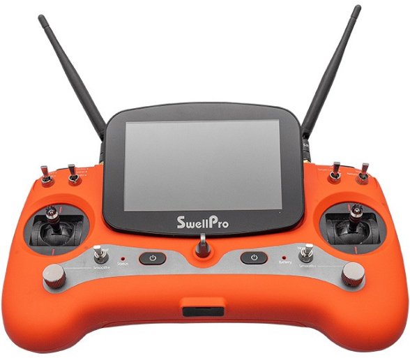 Пульт дистанционного управления от компании SwellPro имеет крупный полноцветный FPV-экраном диагональю в 5 дюймов. Картинка на нем остается четкой даже под ярким солнцем. На этот же дисплей транслируется изображение с камеры беспилотника.