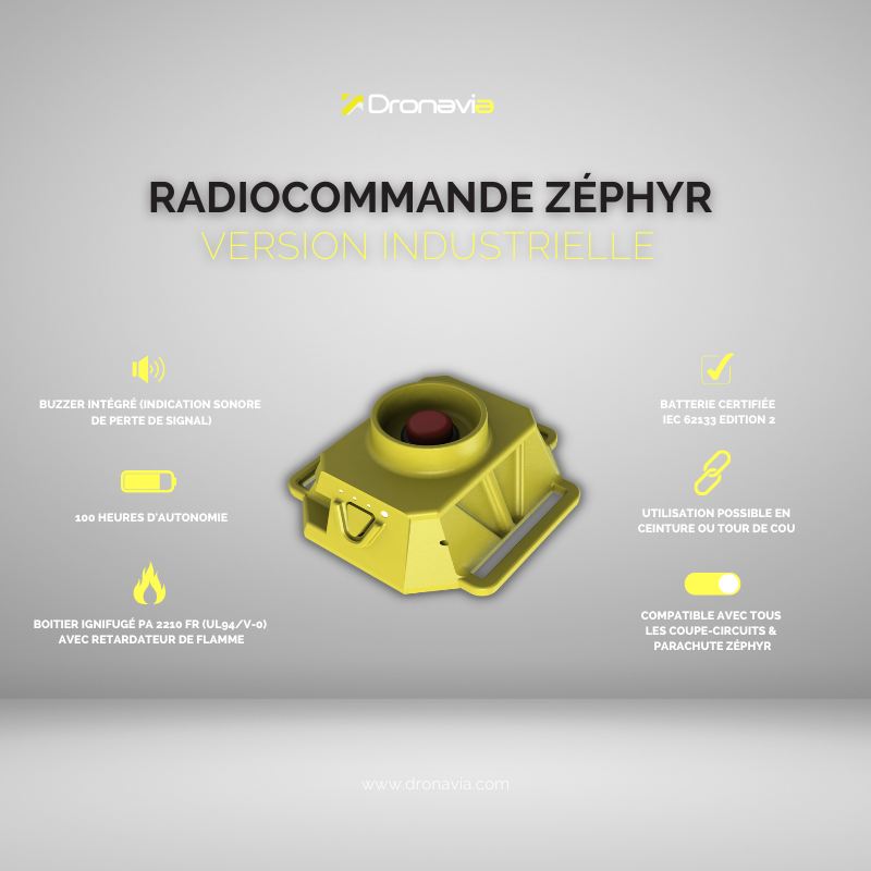 | Дополнительные возможности | Совместима с парашютами и выключателями серии Zephyr / Встроенный зуммер (звуковая индикация обрыва связи) / Автономность 100 часов (10 часов для обычного пульта Zéphyr) / Пожаробезопасный корпус / Можно носить как пояс или на шее |