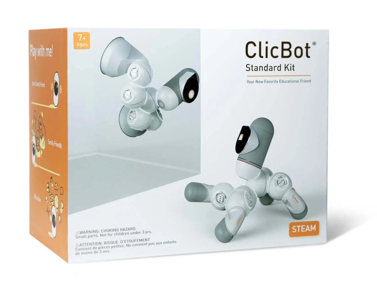Clicbot STANDER KIT создан для развлечения и образования детей. С помощью этого маленького и необычного робота вы сможете научить ребенка основам программирования, математики и логики. Робот умеет думать, реагирует на предложенные условия и слушает вас. В него заложено больше 50 сценариев применения. Используя больше 1000 настроек, вы сможете весело и с пользой провести время, обучая робот новым трюкам, общаясь с ним и совершенствуя его.