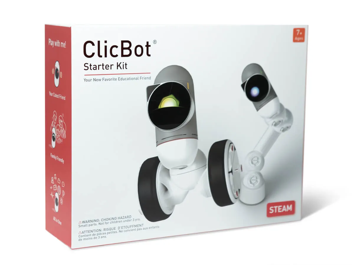Clicbot STARTER KIT – развлекательно-образовательный робот для детей, который научит основам программирования, математики, логики и английского языка. Робот с модульной конструкцией умеет слышать и реагировать на разные ситуации. В его арсенале больше 200 реакций и огромное количество настроек с 50 сценариями применения. У робота интуитивно понятный интерфейс, идеально подходящий для новичков.