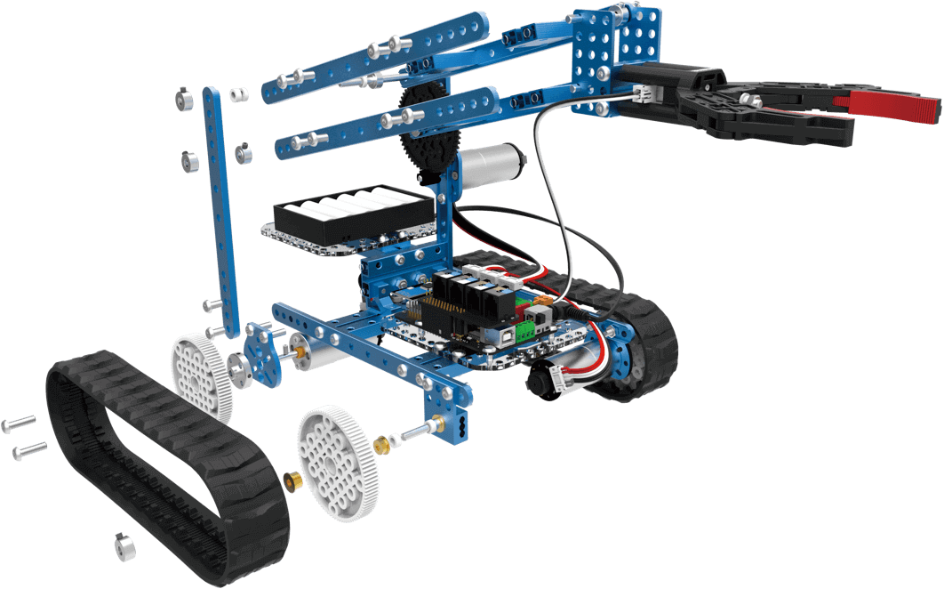 | Комплектация | Робот-конструктор Makeblock Ultimate 2.0 (10 в 1) / Балка 0824-016 - 4шт.| Балка 0824-032 - 5шт.| Балка 0824-064 - 3шт.| Балка 0824-128 - 2шт.| Балка 0824-176 - 1шт.| Балка 0824-192 - 2шт.| Балка 0808-024 - 2шт.| Балка 0412-076 - 4шт.| Балка 0412-092 - 4шт.| Балка 0412-140 - 4шт.| Балка 0412-188 - 6шт.| Балка 0412-220 - 2шт.| Пластина 0324-056 - 2шт.| Пластина 0324-088 - 3шт.| Крепление P3 - 2шт.| Крепление для мотора постоянного тока 25мм - 3шт.| Крепление 3×3 - 4шт.| Пластина 3×6 - 2шт.| Пластина 7×9-B - 1шт.| Соединитель вала 4мм - 6шт.| Ребро жесткости 1616-08-M4 - 4шт.| Поворотная платформа 34х24мм - 1шт.| Пластина для крепления - 1шт.| Крепление для мотора 25мм - 2шт.| Акриловое крепление для MegaPi - 2шт.| Резиновая мембрана - 4шт. Шина 90TB - 4шт.| Пластиковый зубчатый шкив 90T - 6шт.| Пластиковая шестеренка 8T - 3шт.| Пластиковая шестеренка 56T - 2шт.| Пластиковая шестеренка 72T - 2шт.| Крепление для смартфона 360° - 1шт.| Гусеница 80×139мм - 2шт.| Держатель для 6 батареек АА - 1шт.| Медная втулка с фланцем 4×8×4мм - 12шт.| Втулка 4мм - 12шт.| Резьбовой вал 4×39мм - 6шт.| Вал D4×50мм - 2шт.| Вал D4×88мм - 2шт.| Вал D4×160мм - 1шт.| Латунный штифт M4×16 - 4шт.| Пластиковое кольцо 4×7×2 - 4шт.| Пластиковое кольцо 4×7×3 - 8шт.| Пластиковое кольцо 4×7×10 - 2шт.| Пластиковая заклепка 4060 - 20шт.| Пластиковая заклепка 4100 - 20шт.| Пластиковая заклепка 4120 - 20шт.| Винт с потайной головкой M3×5 - 12шт.| Винт с потайной головкой M3×8 - 8шт.| Потайной винт M3×8 - 6шт.| Потайной винт M3×10 - 4шт.| Винт M4×8 - 50шт.| Винт M4×14 - 46шт.| 25мм мотор постоянного тока 9В 185 об/мин - 2шт.| 25мм мотор постоянного тока 9В 86 об/мин - 1шт.| Винт M4×30 - 4шт.| Гайка M4 - 47шт.| Нейлоновая контргайка M4 - 10шт.| Винт M4×22 - 4шт.| Винт M4×16 - 10шт.| Манипулятор - 1шт.| Модуль линейного движения - 1шт.| Затвор - 1шт.| Ультразвуковой датчик - 1шт.| Модуль Bluetooth - 1шт.| Плата с портами RJ25 - 1шт.| Драйвер Megapi для мотора - 4шт.| Плата MegaPi - 1шт.| Кабель для 25мм мотора с энкодером - 3шт.| Трехосевой акселерометр и гироскоп - 1шт.| Адаптер - 1шт.| USB-кабель 1,3м - 1шт.| Кабель 6P6C RJ25 -20см - 2шт.| Кабель 6P6C RJ25 -35см - 1шт.| Резинка - 10шт.| Нейлоновая стяжка 1.9×100 - 10шт.| Универсальная отвертка - 1шт.| Торцевой ключ - 1шт.| Гаечный ключ - 1шт.| Шестигранный ключ - 1шт.| |