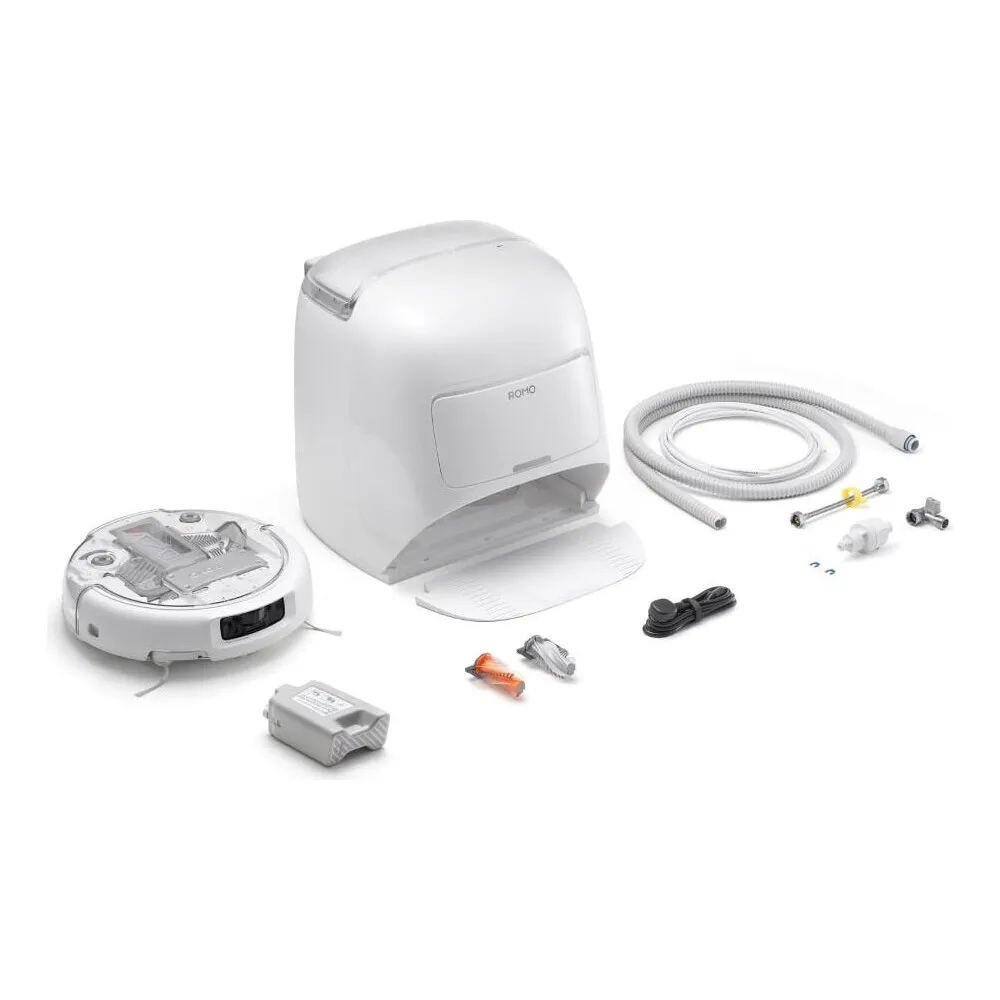 | Комплектация | Робот-пылесос DJI ROMO A × 1 / Базовая станция (автоподача/слив) × 1 / Базовая пластина станции × 1 / Шнур питания ×1 / Очиститель для дезинфекции ROMO × 1 / Роликовая щётка с резиновой щетиной × 1 / Комплект автоматической подачи и слива воды ROMO × 1 |