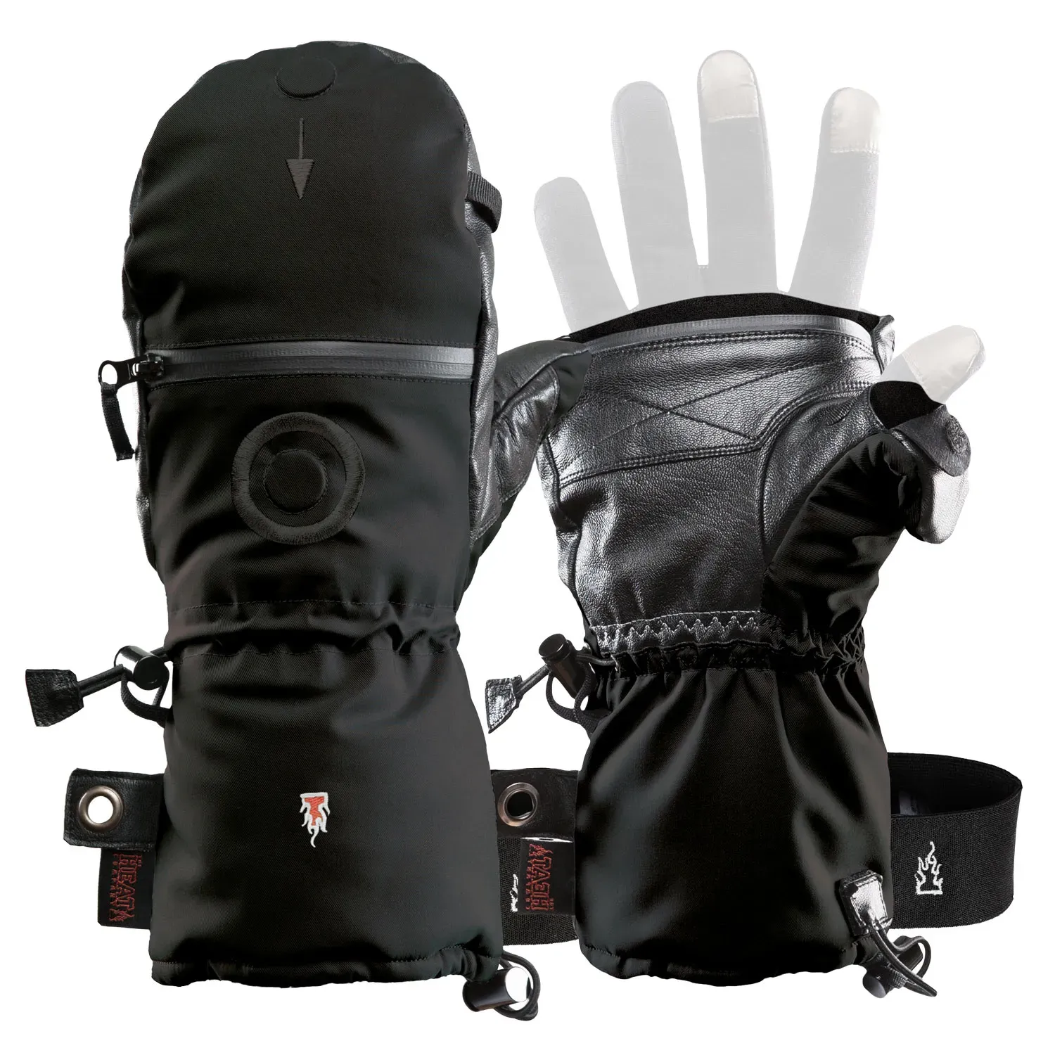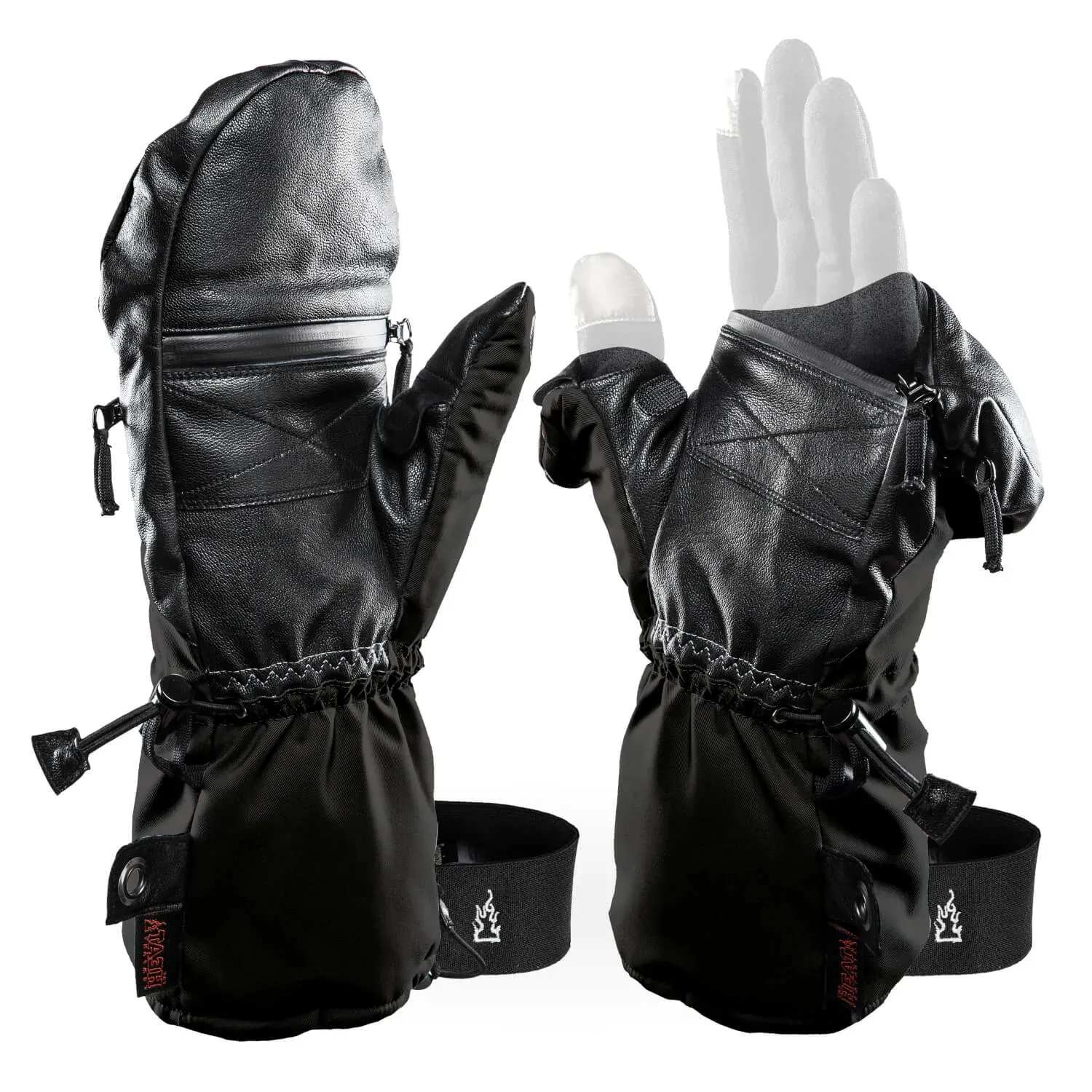 Дополнительным удобством являются складные элементы большого пальца и варежки. Эта функция позволяет выполнять точные задачи, не снимая варежек, что особенно важно в условиях холода. Фиксация складных частей осуществляется с помощью магнитов, что делает использование простым и безопасным. На тыльной стороне ладони предусмотрен карман для грелок HEAT, который позволяет создать дополнительный источник тепла, если это необходимо.