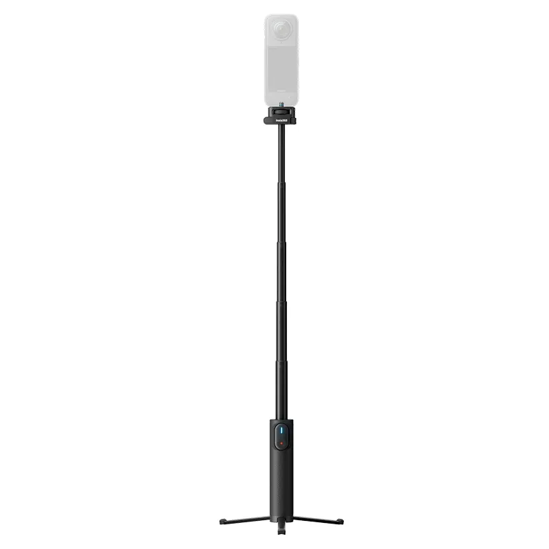 Главное преимущество этой модели - включенный в комплект беспроводной пульт дистанционного управления, который удобно размещается в специальном слоте на самой палке. Пульт позволяет управлять камерой одним нажатием кнопки, что особенно удобно при съемке групповых фото, сложных ракурсов или когда камера находится на расстоянии. При использовании с 360-градусными камерами Insta360, палка становится полностью "невидимой" в кадре, создавая потрясающий эффект съемки с дрона или от третьего лица без дополнительного редактирования.
