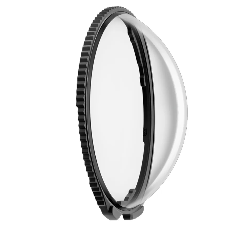 Защитные линзы Insta360 X5 изготовлены по индивидуальной оптической технологии, что обеспечивает полную прозрачность и отсутствие искажений. Камера автоматически активирует режим защиты при установке аксессуара, а конструкция линз точно повторяет угол обзора, предотвращая появление швов при панорамной съёмке 360°.